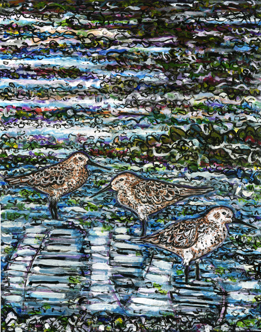 I live a three minute walk from the shoreline which is fed by many strands of Bowker Creek. I have only seen these Sandpipers early in the morning or late in the afternoon generally where the creek hits the shore or in some of the little discreet alcoves and pools carved out of the natural rock. I don't believe they live here all year long - probably some breed here in the Spring and Summer but perhaps other typesWinter here. Not being an expert, but merely someone who delights in birds, I think this variety is named Common Speckled.