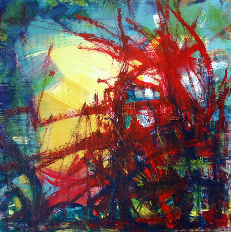 Lots of little things going on in my head with this piece....using line without using my favourite drawing utensils....using a bigger brush on a smaller surface....the use of red but not necessarily to entice in a soothing mode (red being a colour I note that people are attracted to because it is bright and alive and....)....the idea of nightmares without the easy way out of relaying them as evil but rather simply as fears....which can at times of course in reality be helpful and positive if you face them and deal with them. Still....also not an attempt to be ugly but to have a sense of beauty and balance...as well as to deal with the idea of focus as in being in focus or not being in focus and what does that actually convey in the artwork?