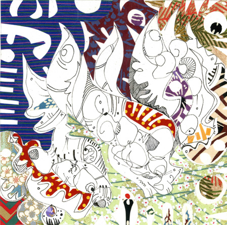I strangely...often do not create images this way but I really really love it when the line drawing is given precedence over the cut papers or when the cut papers have a direct relationship with the lines and space to enhance them and give them room to live.