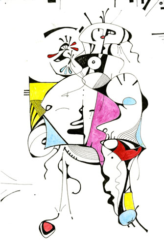 Works on Paper. The simple act of drawing and painting with inks and pencil in free form: influenced by my lifelong love of Illustration and the essence of Abstraction.