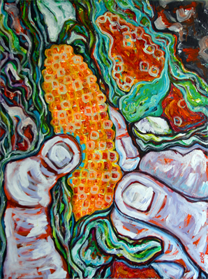 Summer: earthy; sexual; pithy; gritty; rich; full; complete… barbeques, beer, and baseball. I can be greatly moved by the power of images that are minimal and static, but I like to create things that have movement. I play with the principles of colour intuitively rather than by the colour wheel, which is really a parpy way of saying I do things by trial and error and just work at things over and over until I get somewhere…anywhere.